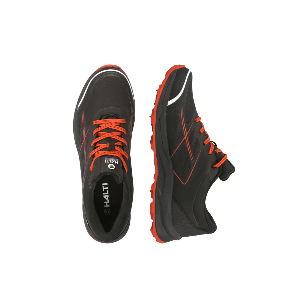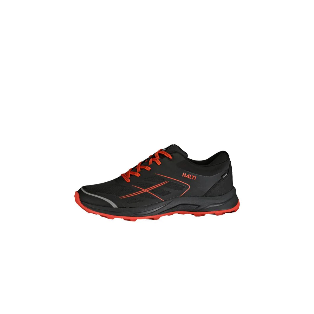Halti GripmaxX Spike-yttersulan har 17 kolstålspikar inbäddade i en slitstark gummiyttersula, och den lätta och flexibla Phylon-mellansulan är stötdämpande och lämplig för jämn löpning. Fodrets DrymaxX-membran håller fötterna torra och manschetten är vadderad för komfort och god passform.