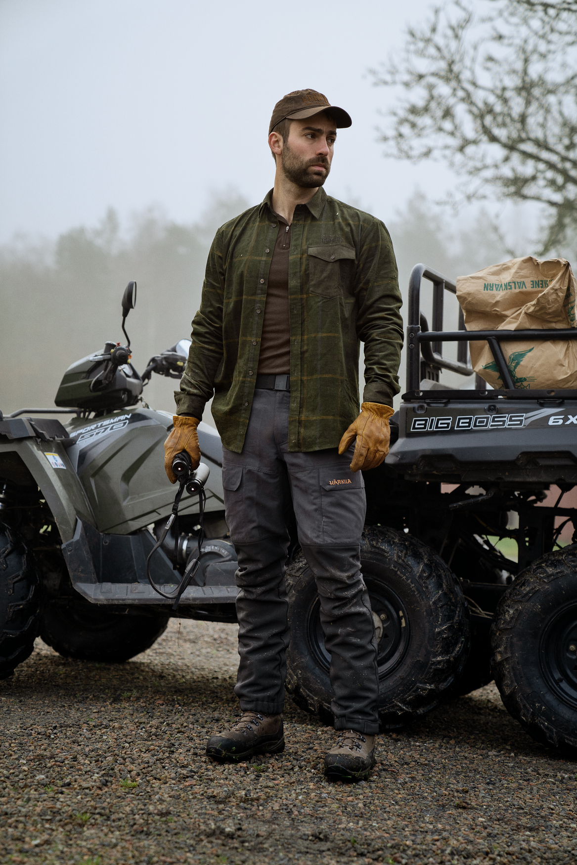 Härkila Scandinavian-byxorna är ett par byxor som är så mjuka att du kan pyrscha ljudlöst i dem, samtidigt som de är så slitstarka att du kan använda dem vid revirskötsel och andra friluftsaktiviteter året runt. Byxorna är extremt bekväma på och har en rad praktiska funktioner, så som ventilationsöppningar med dragkedja, mobil- och patronhållare, ljudlösa magnetlås på fickorna m.m.