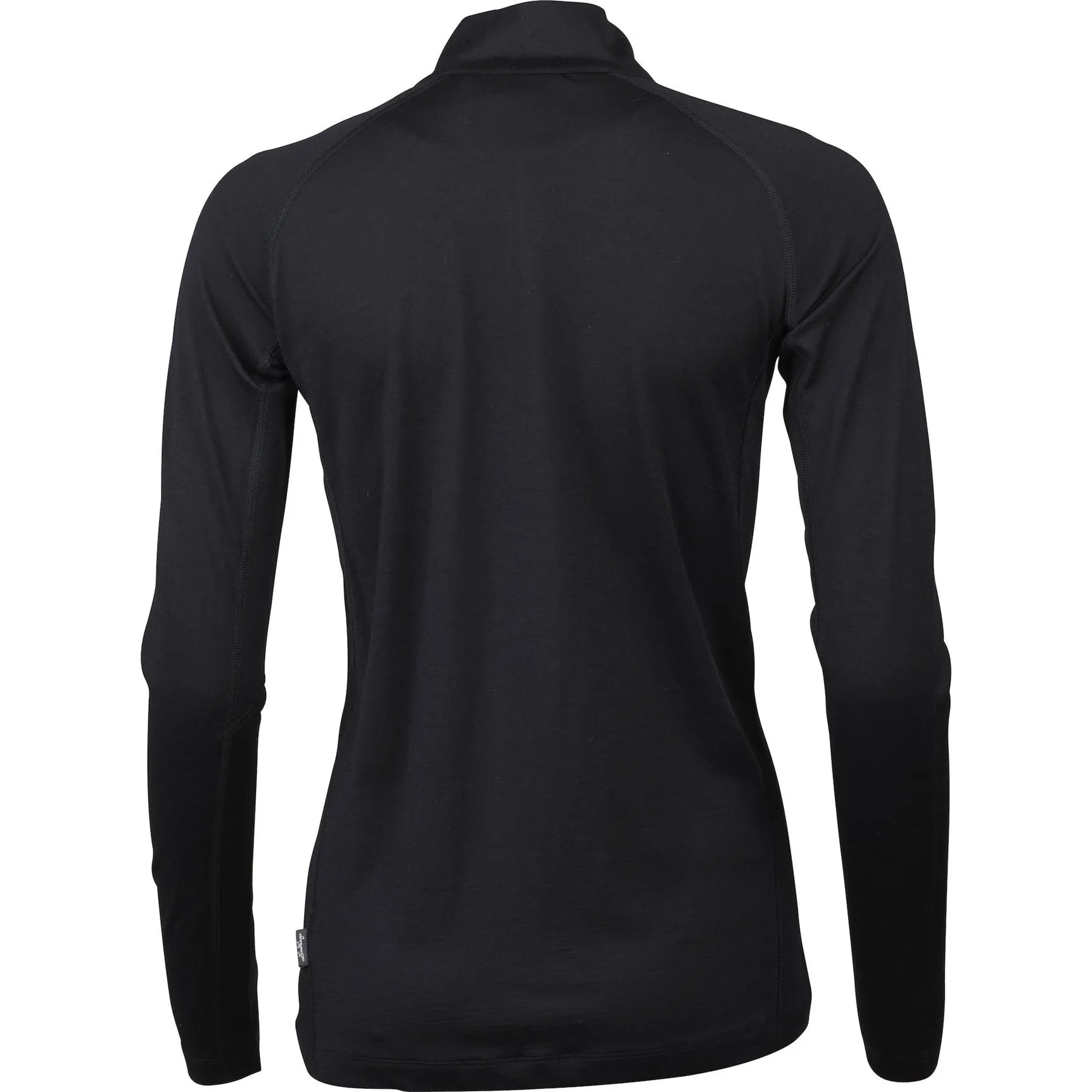 En långärmad underställströja med dragkedja framtill, tillverkad i 100 % mjuk merinoull.